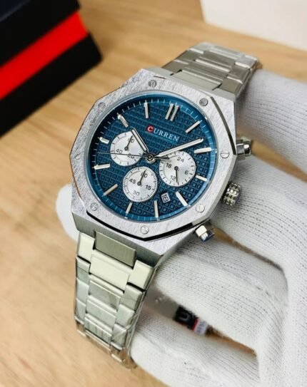 Curren 8455- Silver Blue Men’s Watch Price In Bangladesh