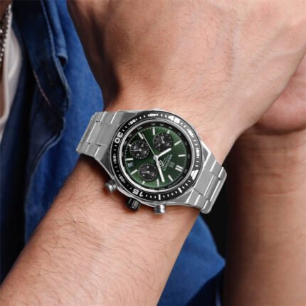 Model: NAVIFORCE NF9153L Alarm output with 4 min, Snooze Day, Date, and Time Display Chronograph with and 1/100 lap operation Dual Core Analog and Digital display EL (Blue) function Hourly chime function Stainless steel band Water-Resistant Case Material: Stainless Steel