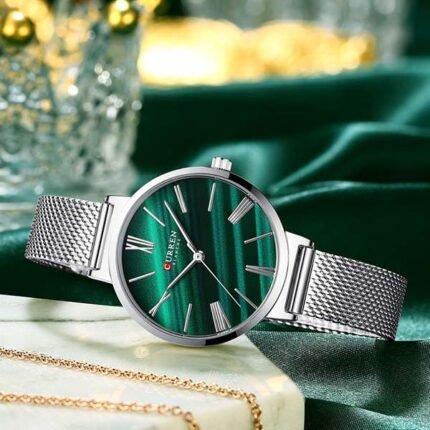 Curren Women’s Watch with Stainless Bracelet and Green Dial 9076SILVER
