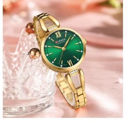 Curren Original Brand Green Dial Gold Casual Fashion Simple Design Quartz Waterproof Women’s Watch 9092