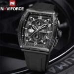The Naviforce 8052 is a quartz watch that combines fashion and function. It has a square case with a chronograph and a date display. It is made of stainless steel and silicone, making it durable and comfortable. It is also water resistant up to 50 meters. The Naviforce 8052 is a stylish watch that will make you stand out from the crowd.