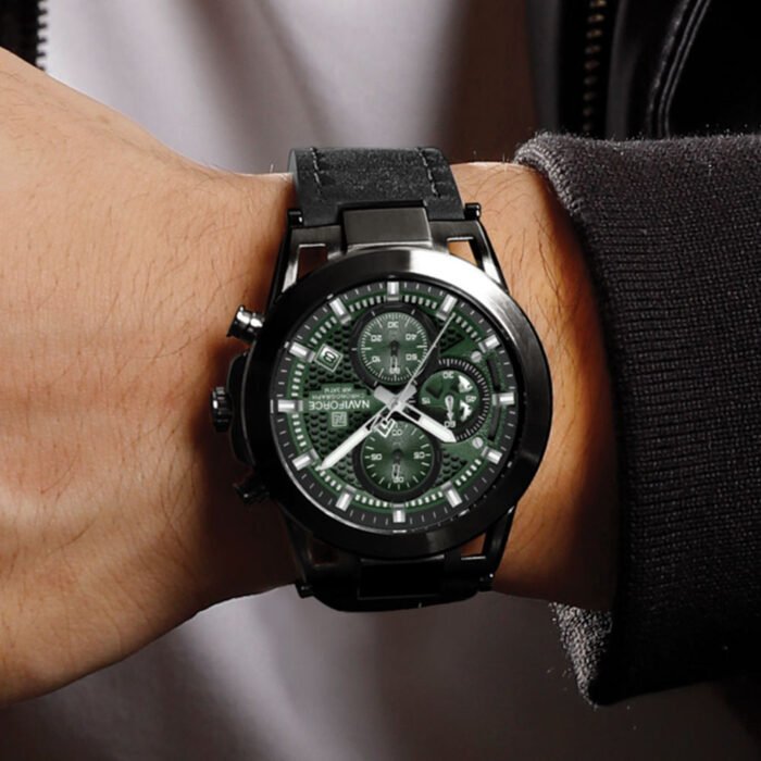 Be the first to review “Naviforce 8073 Men’s Green Dial Chronograph Watch – Sporty Waterproof Timepiece” Cancel reply