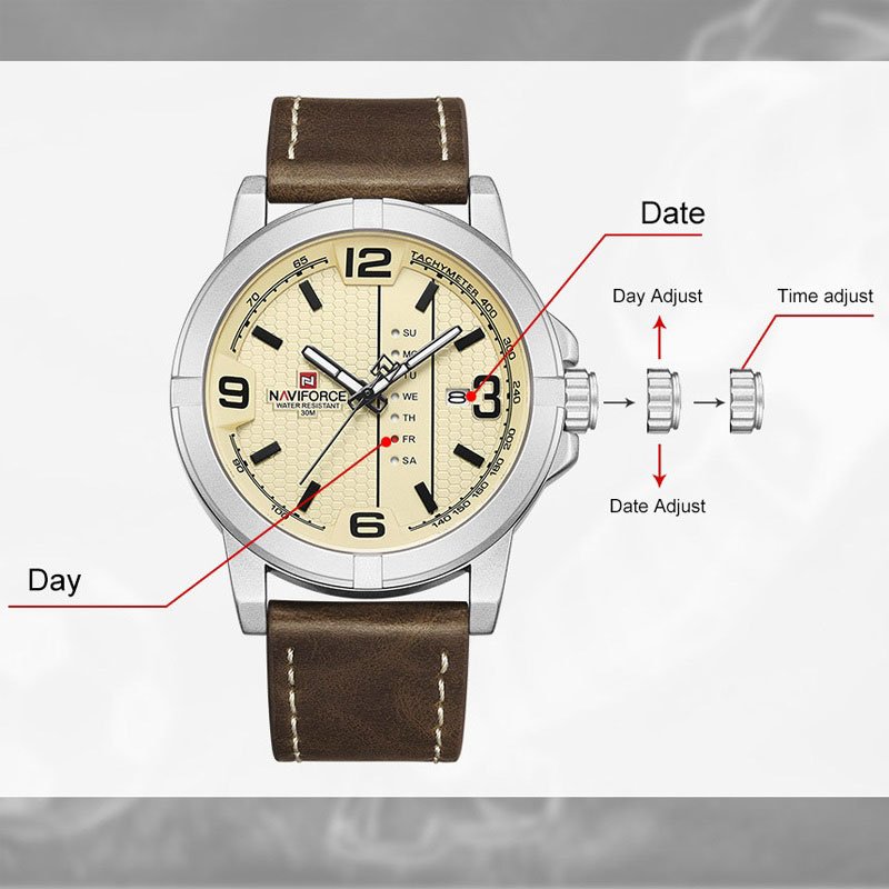 The Naviforce NF 9177 for Men is a sophisticated timepiece with a 40 mm dial, encased in durable mineral glass. This watch features a stainless steel strap and a quartz movement originating from Japan. It offers digital and analog displays, a calendar, and a light. With a water resistance of up to 30m, it’s designed for everyday use. A blend of style and functionality, it’s the perfect accessory for the modern man.