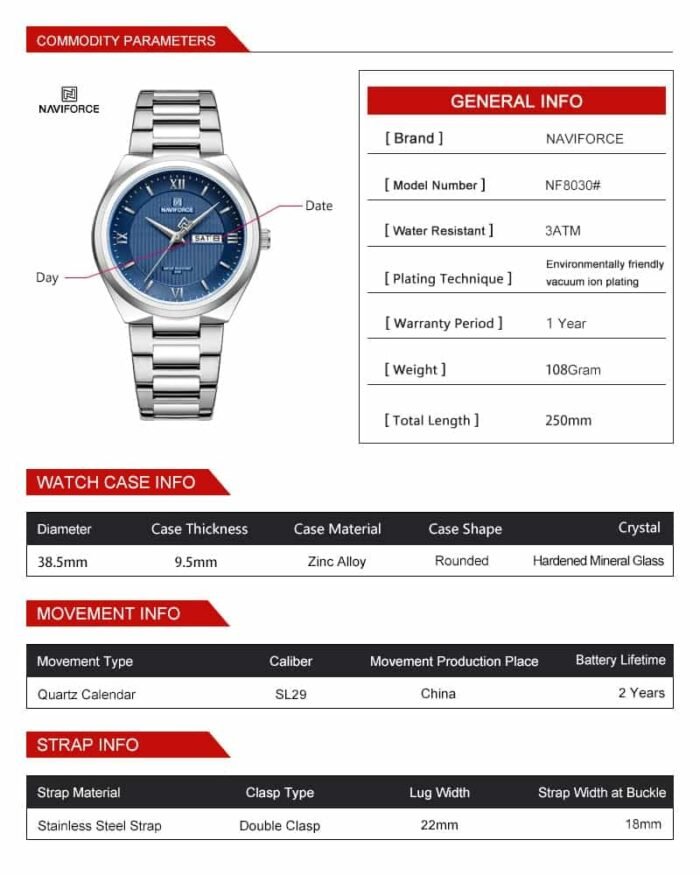 Naviforce Nf 8030 Mens Small Dial Quartz Movement Wrist Watch For Men.