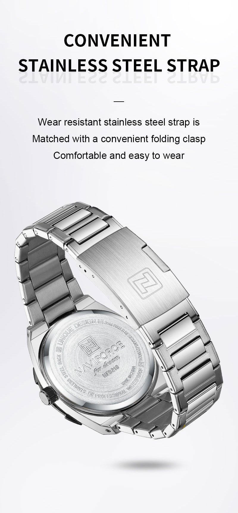 Naviforce Nf 9218 Men’s Quartz Movement Stainless Steel Water Resistance Wrist Watch
